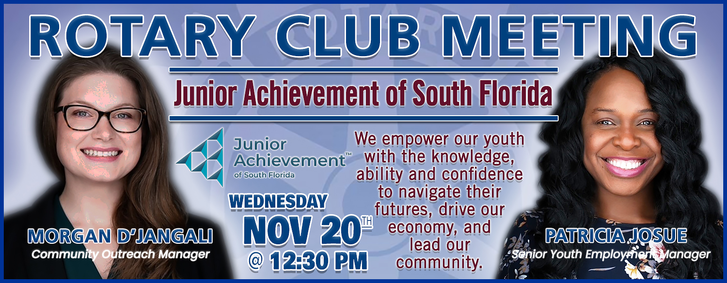 On November 20, 2024, we had the pleasure of hosting Patricia Josue, the leader of Junior Achievement of South Florida's Summer Youth Employment Program, as our guest speaker. Her presentation was energetic, enthusiastic, and packed with valuable information. We are excited about the potential opportunities to collaborate and work together in the future!
