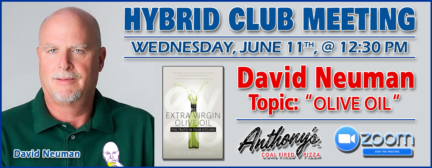• June 11th - Guest Speaker: David Neuman, Topic: "Olive Oil"