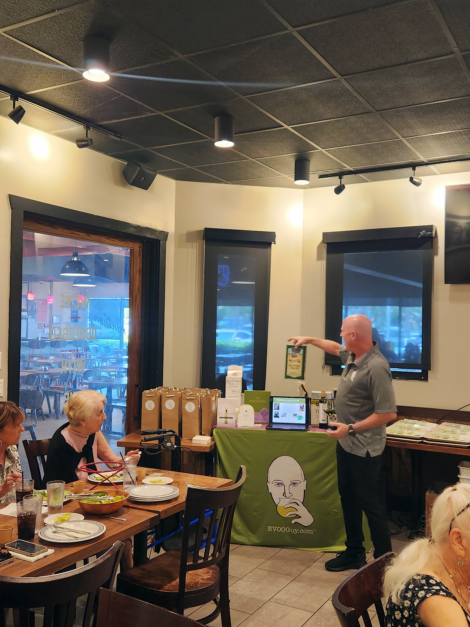 We had a full house and also several guests including Rotarians Alan Cohn and Sara Wagner from the Fort Lauderdale/Cypress Creek Club. Our guest speaker, David Neuman, a world-renowned olive oil expert and a member too of the Fort Lauderdale/Cypress Creek Rotary Club, gave an extraordinary presentation.