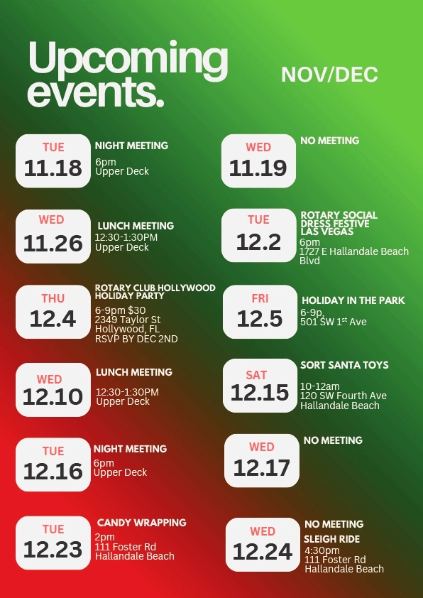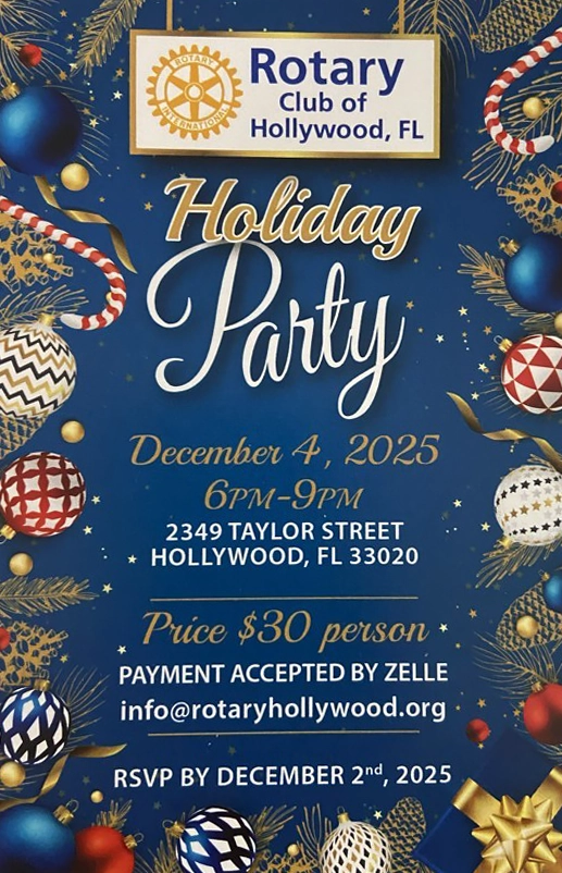 | THU., DEC 4TH @ 6:00 PM - ROTARY CLUB OF HOLLYWOOD "HOLIDAY PARTY" |