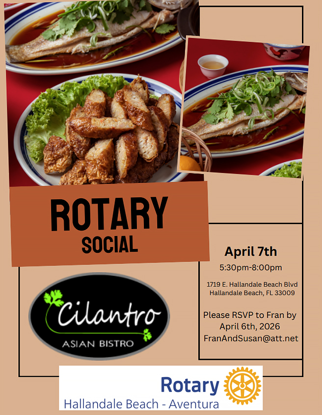 | TUE., APR 7TH ~ 5:30 PM-8:00 PM @ CILANTRO ASIAN BISTRO ROTARY SOCIAL (HALLANDALE BEACH-AVENTURA) |