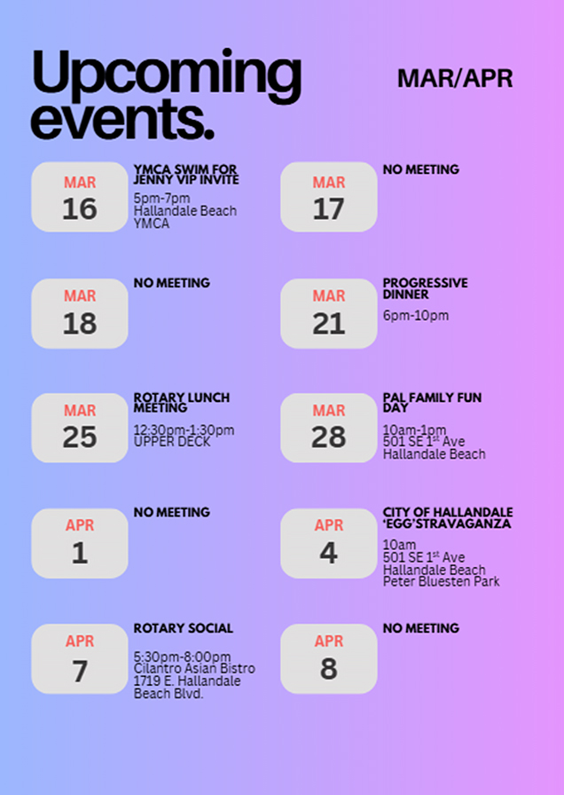 VOLUNTEERS NEEDED: We are looking for volunteers for our upcoming City of Hallandale ‘EGG’STRAVAGANZA! If you’re able to lend a hand and help, make it a great day for the families, we would truly appreciate your support. Please let Marushka know if you can volunteer.
