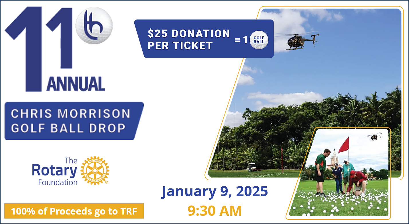 The Rotary Foundation (TRF) Golf Ball Drop was created in 2013 by Chris Morrison, member and Past President of the Rotary Club of Coral Gables, to raise money to assist in Rotary District 6990 various grant programs.