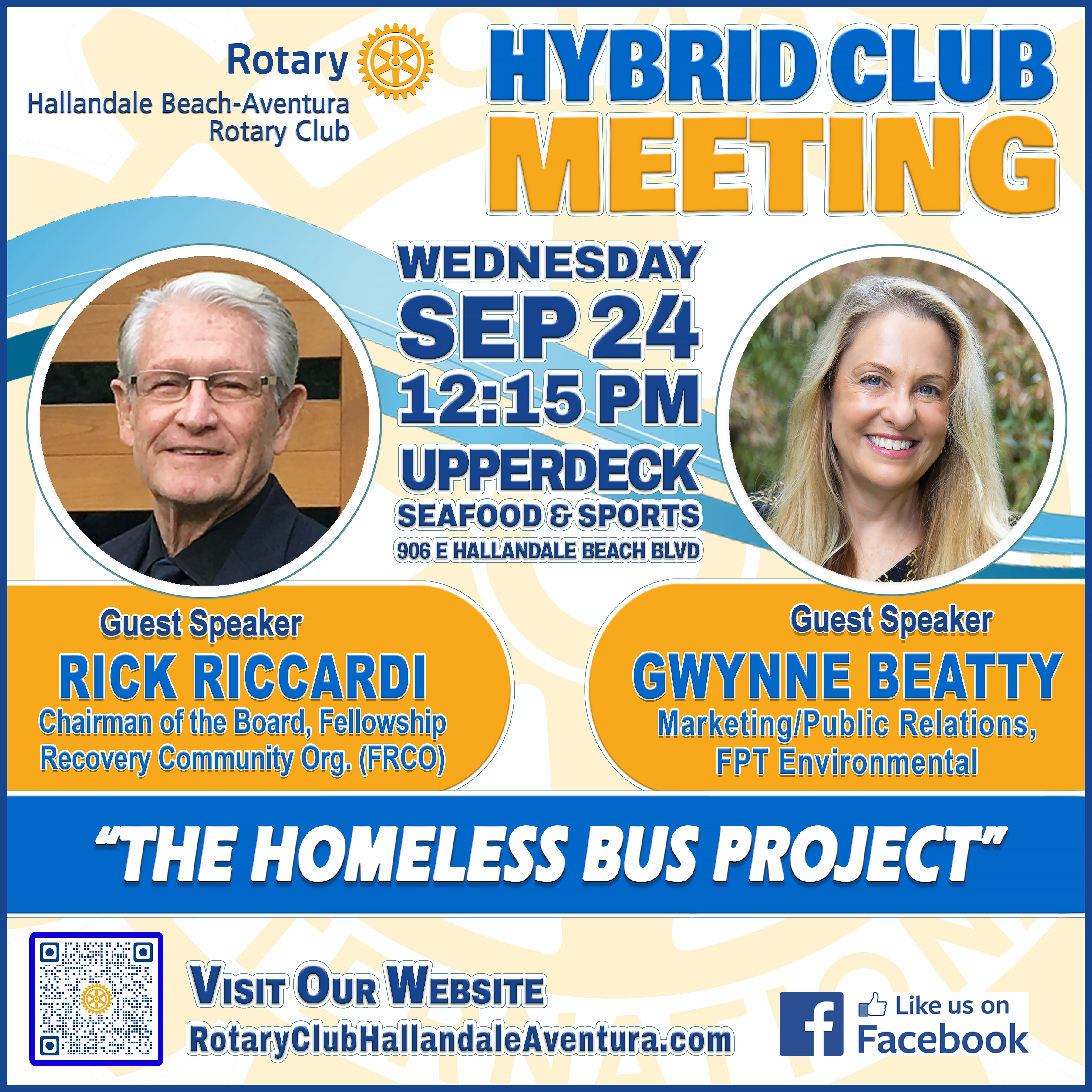 • Sep 24 - Guest Speakers, Rick Riccardi & Gwynne Beatty - Topic: "The Homeless Bus Project"