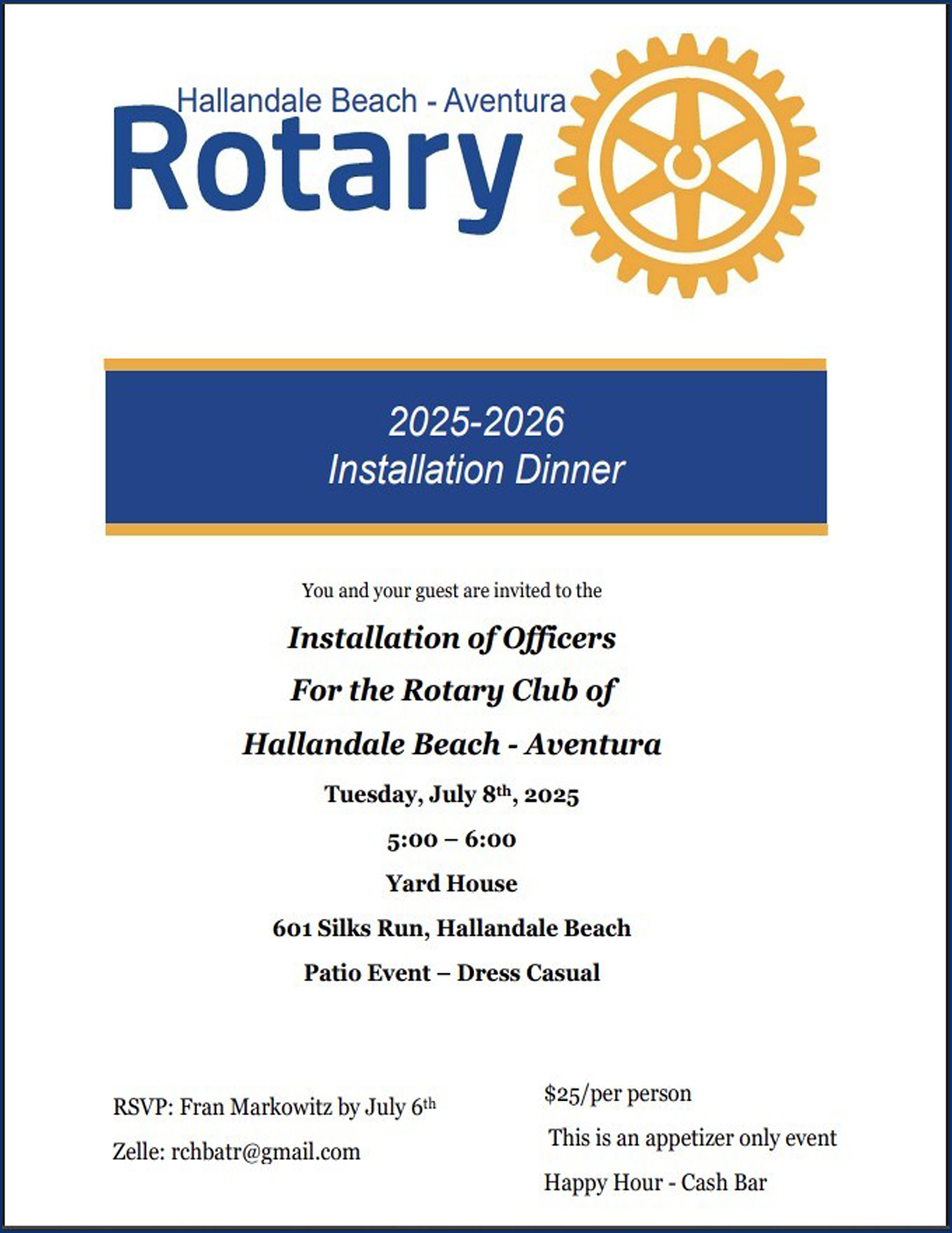 • Aug 6 - Rotary Club Social @ Disalvo's Pizza, Hollywood