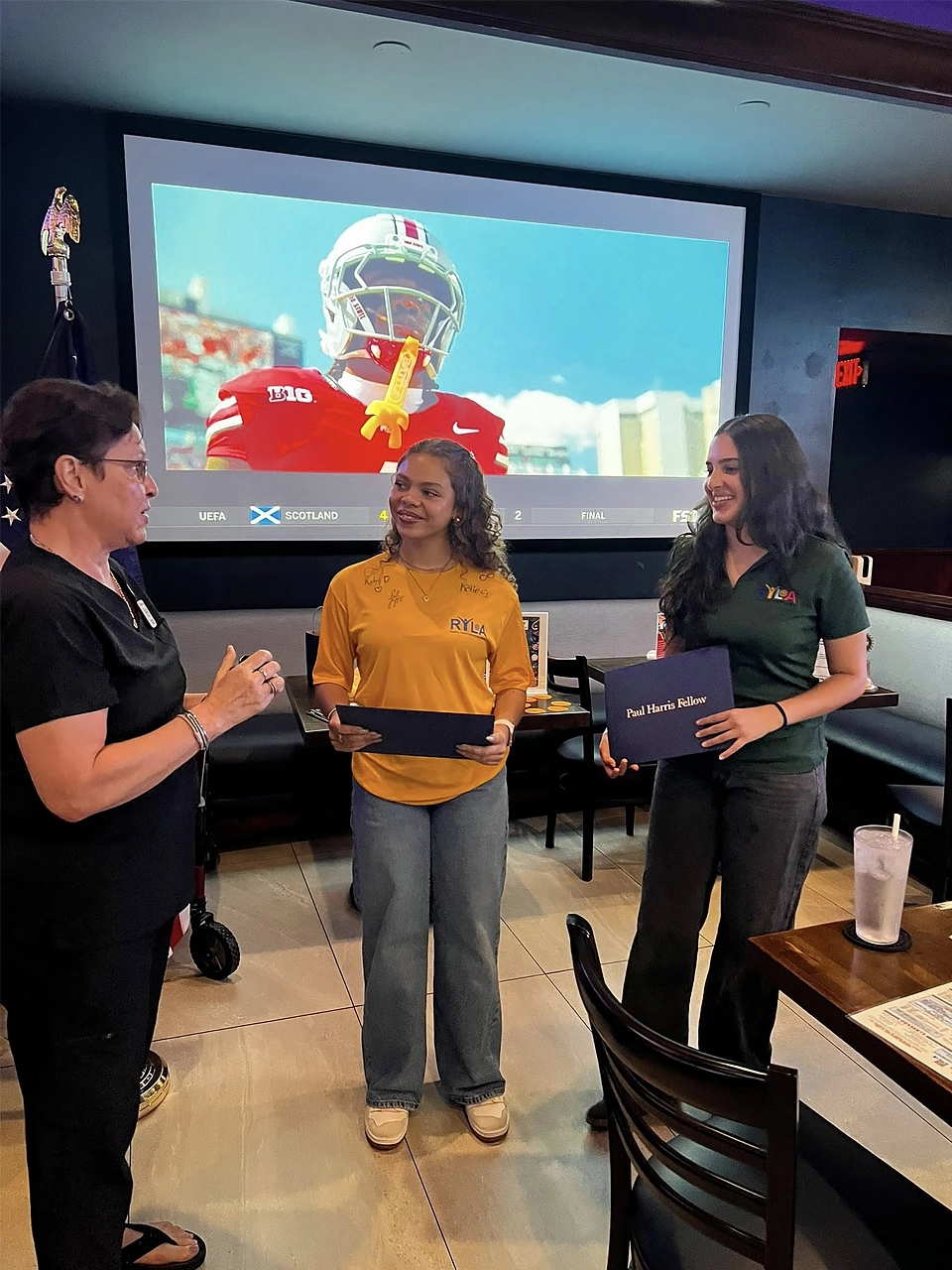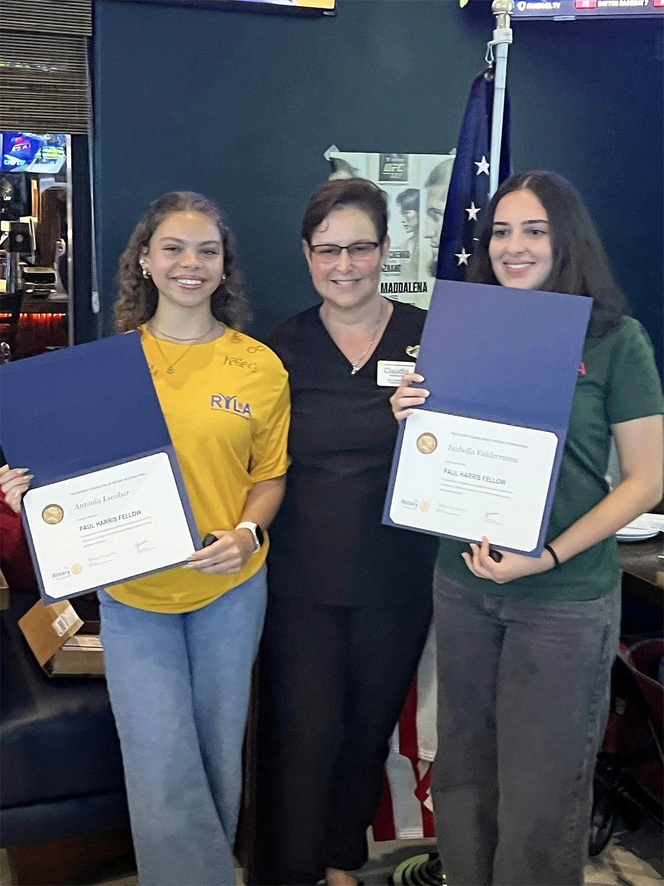 We had a great Rotary Social on Tuesday, November 18, 2025. Isabella Valderrama and Antonia Escobar spoke about their RYLA experience as both conferee and counselor, and it was really inspiring. Claudia Valderrama had the honor of presenting Isabella and Antonia with their Paul Harris Recognition for their outstanding contributions to Rotary and the community.