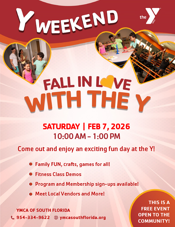 | SAT., FEB 7TH, 10:00 AM-1:00 PM / YMCA OF SOUTH FLORIDA Y WEEKEND: "FALL IN LOVE WITH THE Y" |
