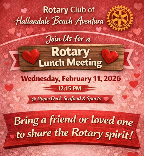 | WED., FEB 11TH @ 12:15 PM / UPPER DECK SEAFOOD & SPORTS ROTARY LUNCH MEETING |