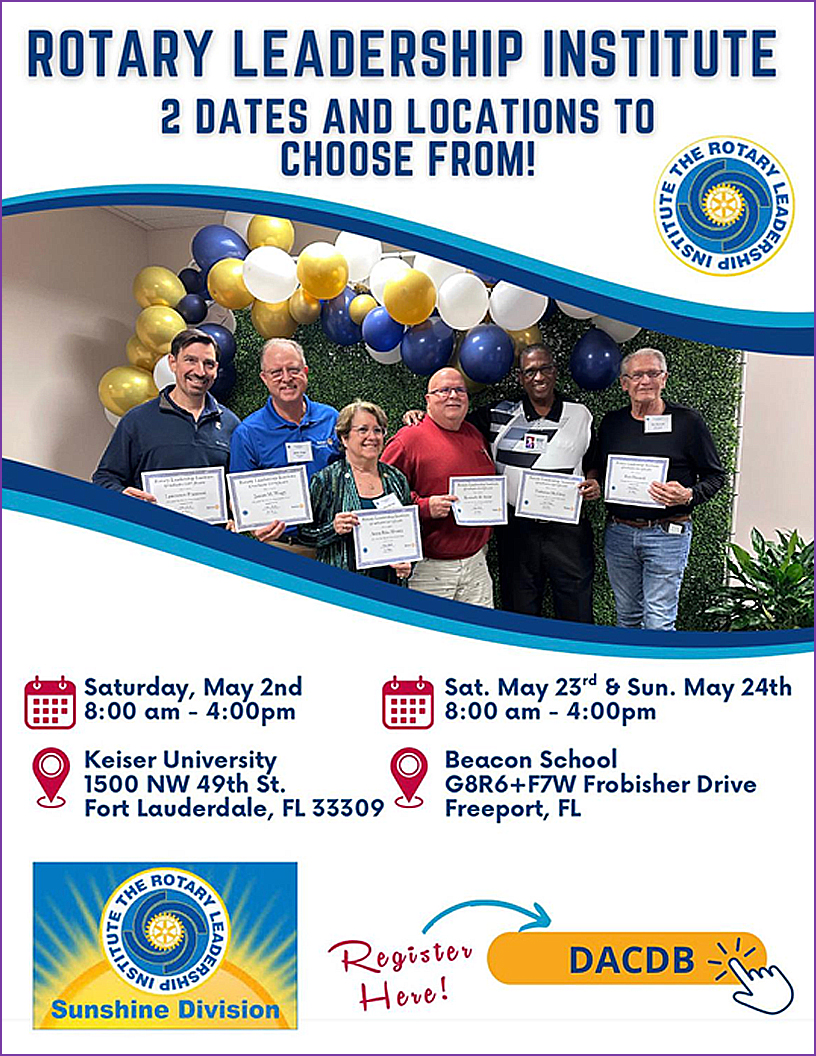 | SAT., MAY 2ND ~ 8:00 AM-4:00 PM @ KEISER UNIVERSITY ROTARY LEADERSHIP INSTITUTE |